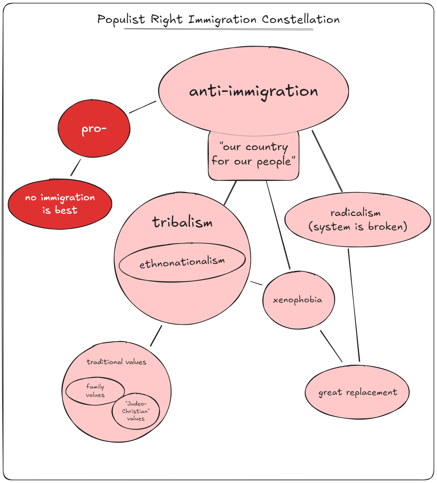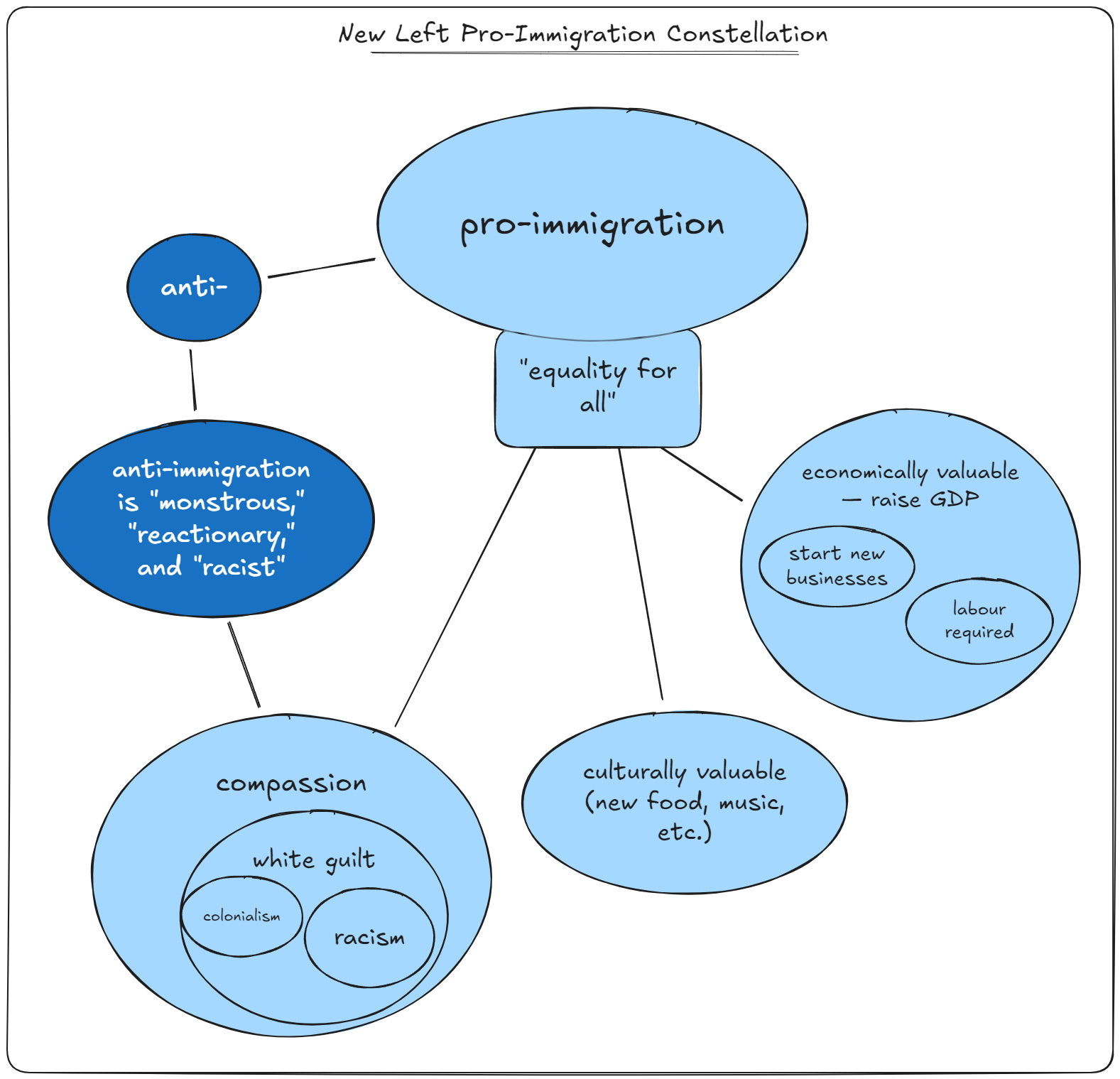 Anti-Immigration stance This was the constellation of polite society circa 2024 (the success of Trump has thrown all such values into confusion — see, the death of the Woke). It remains the only mainstream counter-narrative to the Populist Right at play today.