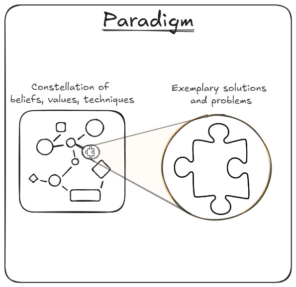 This is what Kuhn means by the term paradigm: itâs the structural container within which scientists work.
