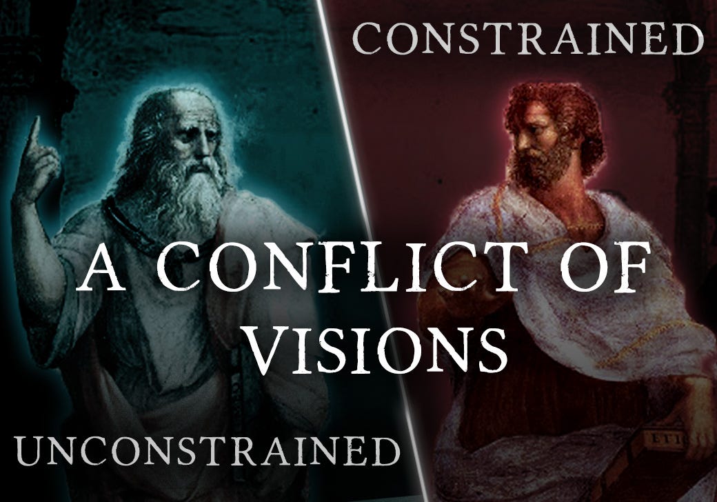But this distinction between the Aristotelian vision and the Platonist vision — or as Sowell calls them the “Constrained” and the “Unconstrained” — is not a modern phenomenon; it is a pattern that lies at the core of human history. The one vision is tragic and sees humans as inherently and irrevocably flawed while the other is utopian believing that human nature is perfectible.